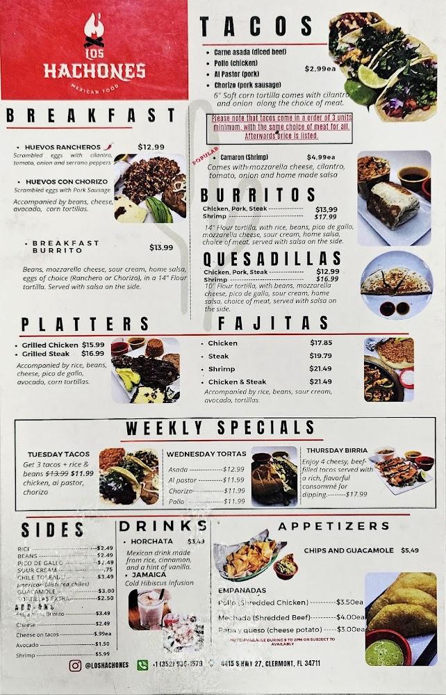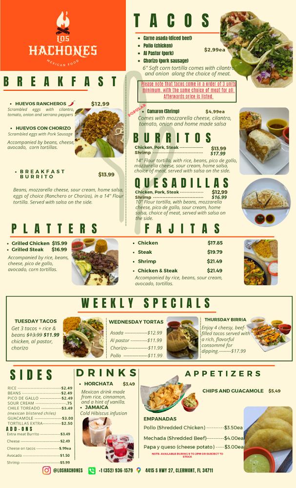 Los Hachones Mexican Food is your go-to destination for authentic Mexican cuisine, served with flavor and love. Conveniently located inside the Marathon Gas Station at 4415 S Hwy 27, Clermont, FL, we offer a delicious menu perfect for breakfast, lunch, or dinner on the go. Enjoy various options, from traditional favorites to quick bites, all crafted to perfection. With our commitment to exceptional service and accessible facilities, we ensure an enjoyable experience for everyone. Call us at +1 352-936-1579 to place your order for pickup and take a taste of Mexico with you on your journey! ¡Muchas gracias, vuelva pronto!